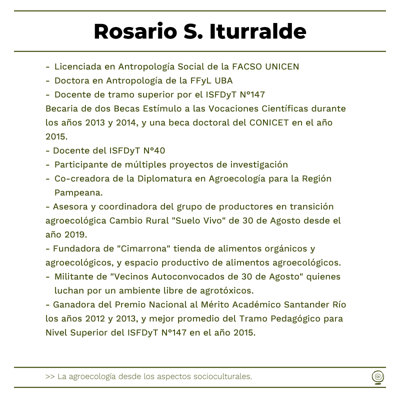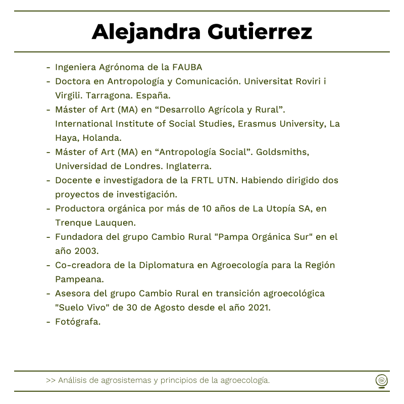 Alejandra Gutierrez "Las prácticas agroeocológicas derivan de principios que buscan imitar y potenciar los procesos que se dan en la naturaleza, como incrementar la biodiversidad funcional, el reciclaje de nutrientes y considerar al suelo como un organismo vivo" .